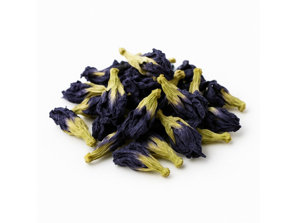Butterfly pea, modrý čaj nebo motýlí čaj – to vše jsou názvy pro klitorii ternatskou (Clitoria ternatea). Tato rostlina je známá především díky svému jedinečnému přírodnímu barvivu, které vytváří sytě modrý nálev. Po přidání citronové šťávy se barva mění do fialových až růžových tónů. Chuť nálevu je spíše zemitá, jemně dřevitá, vůně není výrazná.